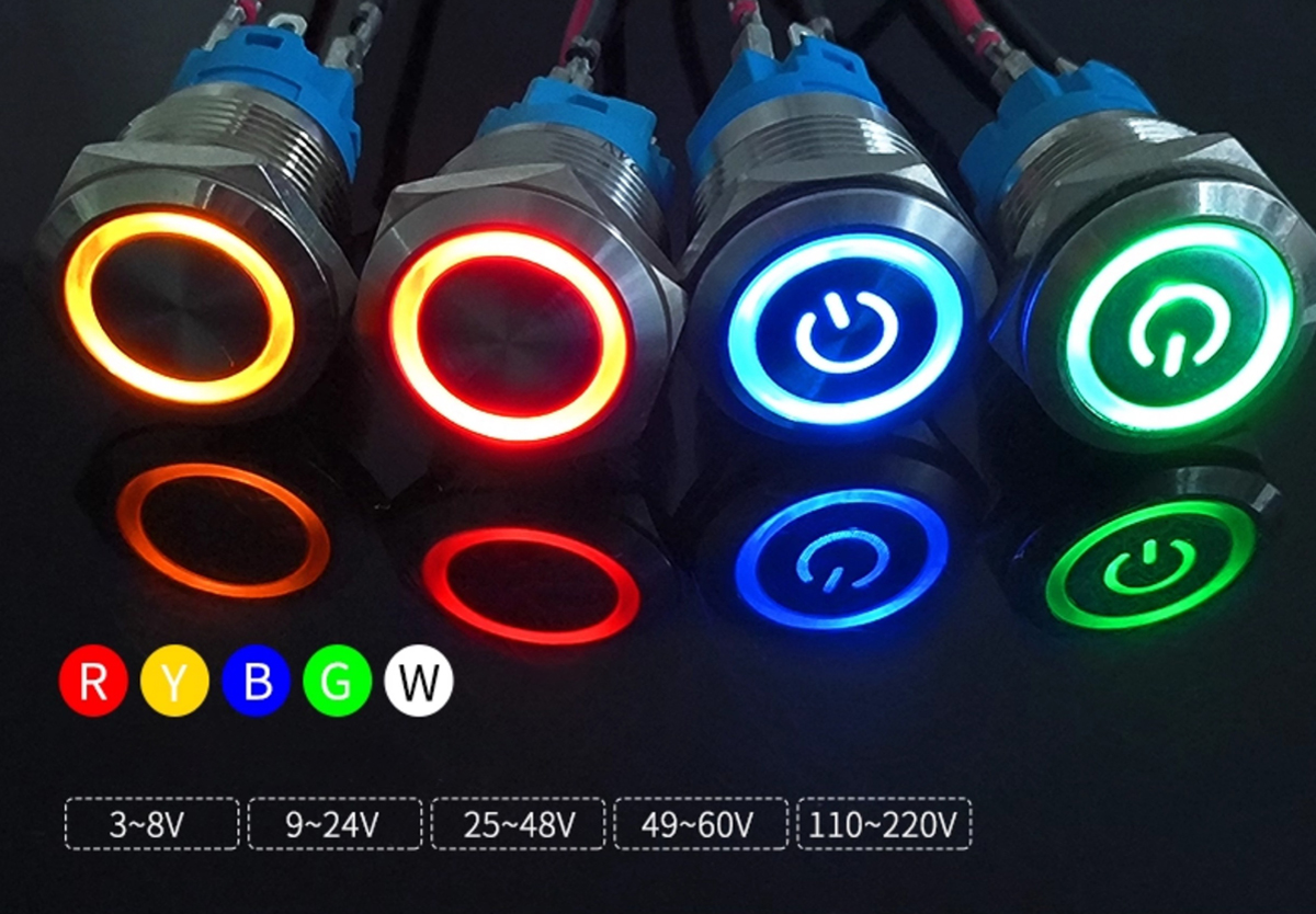 industrial push button switch, 22mm momentary push button, IP67 waterproof switch, LED illuminated switch, latching push button, stainless steel push button, DC-13 inductive load, silver tin oxide contact