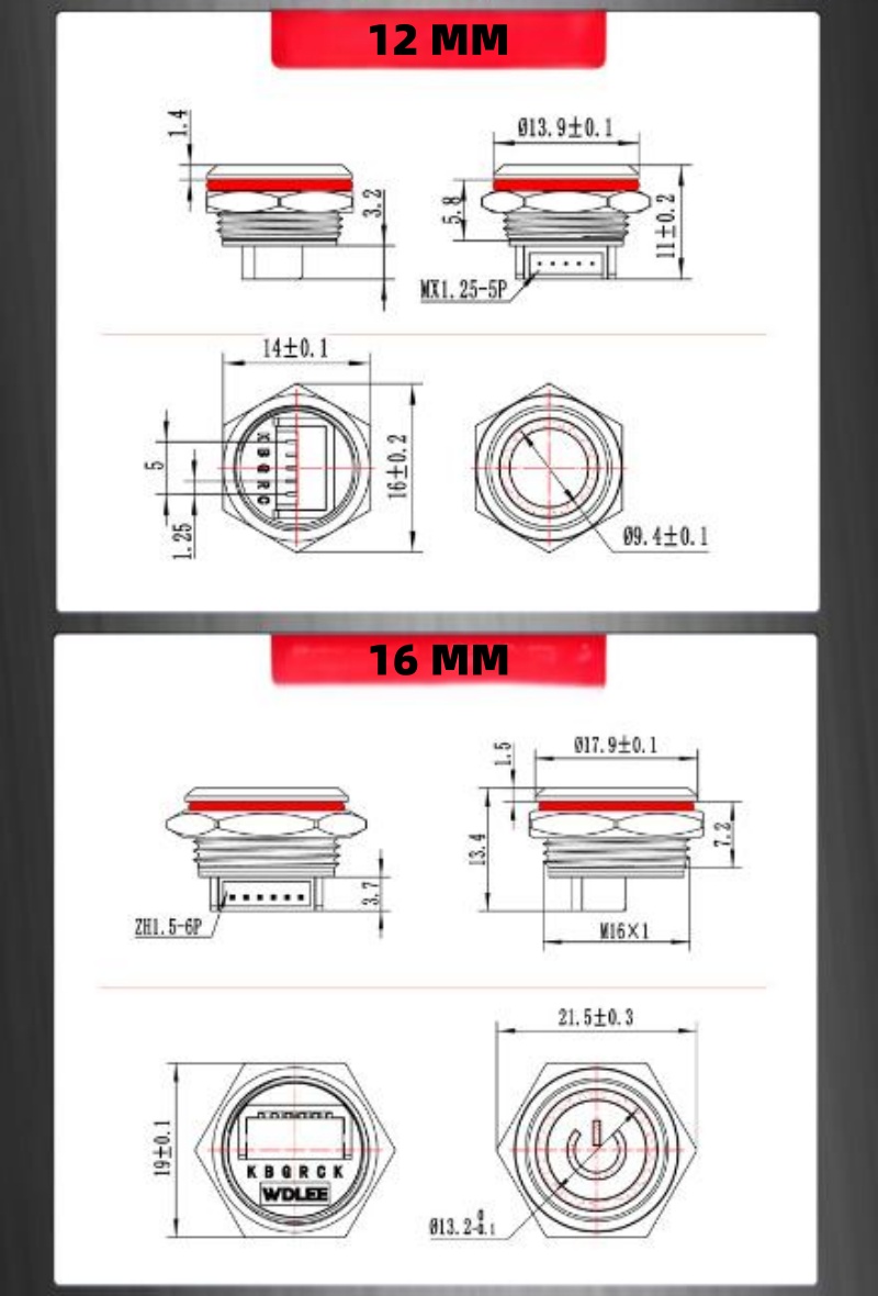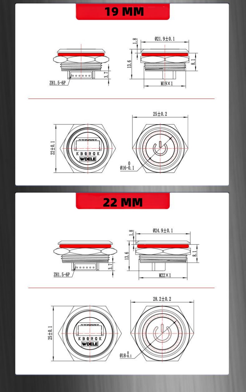 This series of IP67 waterproof metal tactile switches comes in 12/16/19/22mm sizes with multiple LED options including dual-color, tri-color and RGB multicolor illumination. Perfect for modern control interfaces requiring both durability and visual customization.