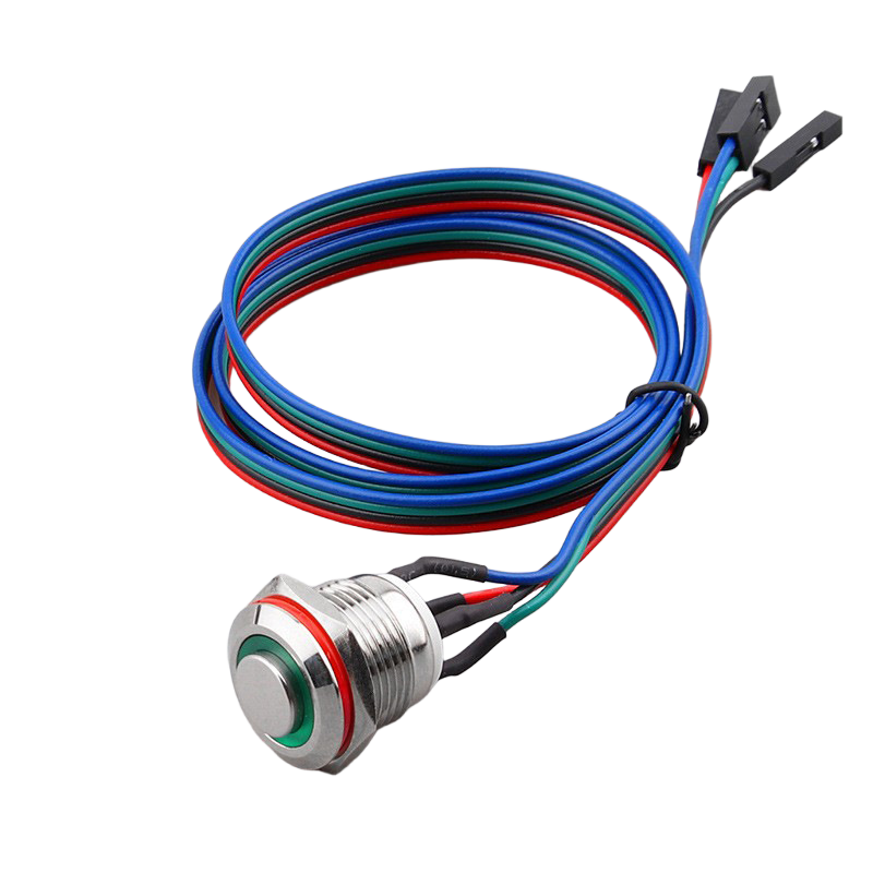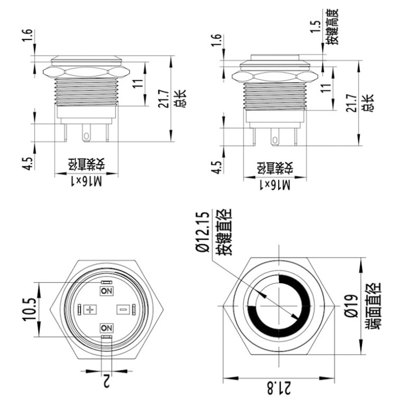 This 12/16mm waterproof metal button switch features momentary action, explosion-proof construction, and a clear power symbol on its illuminated ring. Ideal for hazardous environments requiring reliable power control.