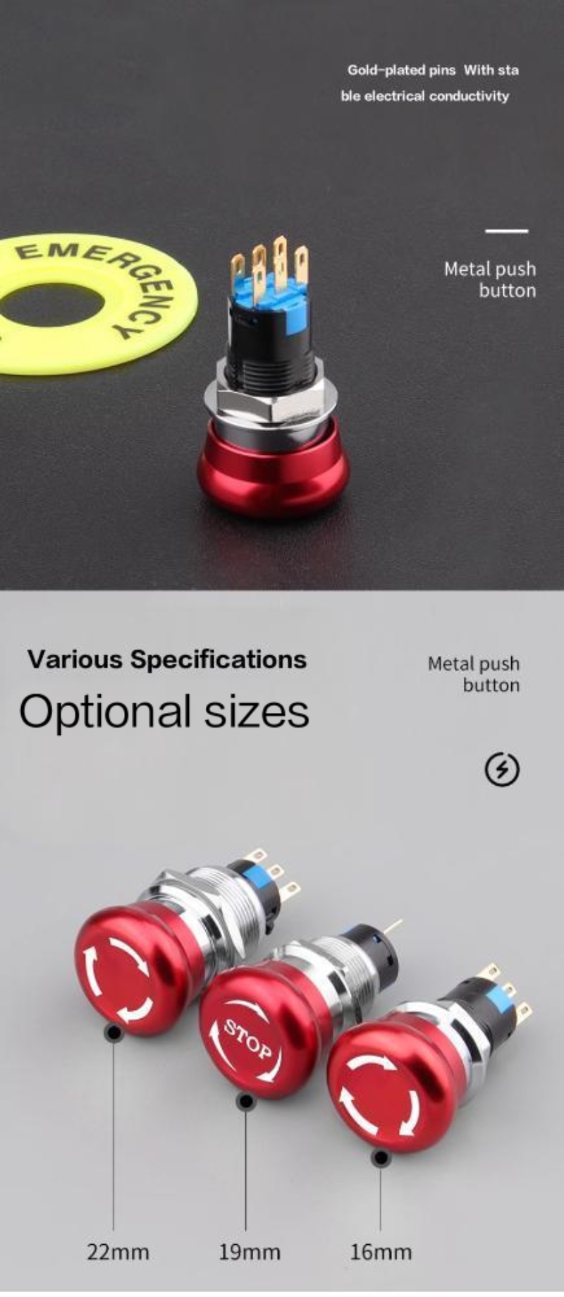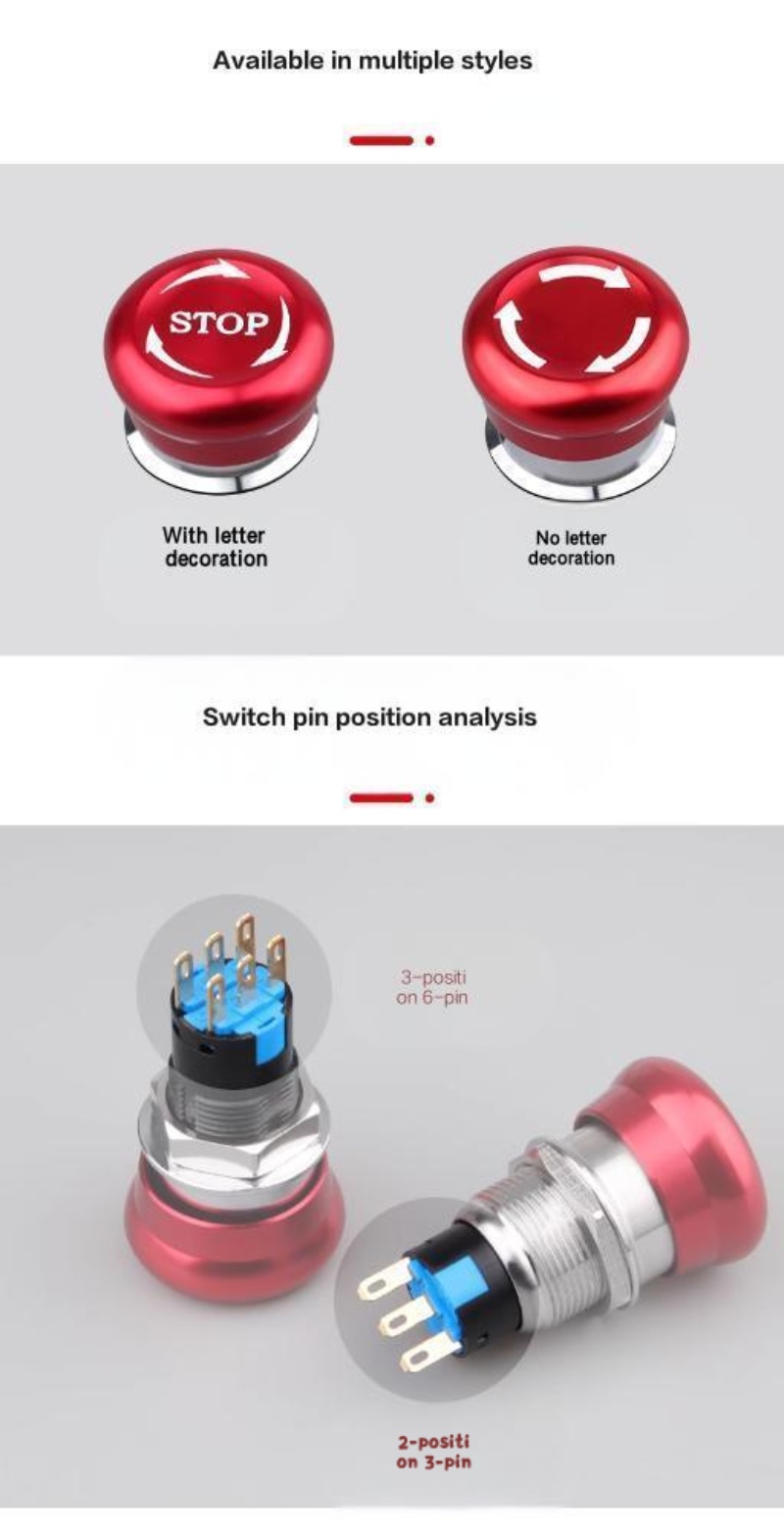 • 16 19 22mm Metal Emergency Stop Switch Buttons Mushroom Waterproof Metal Material Maintained