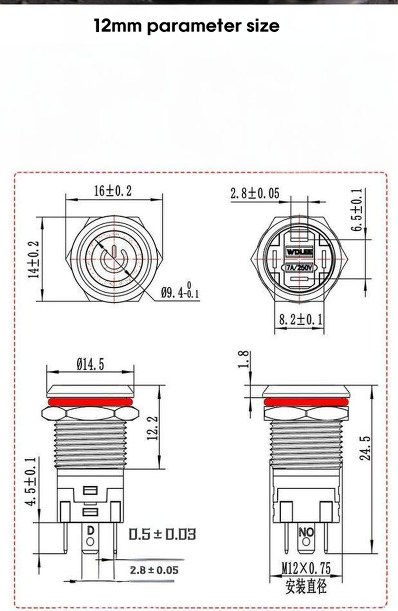 This 16mm black metal push button switch is available in both maintained and momentary versions. Rated for high current with waterproof protection, it supports custom engraving for access control and security systems.