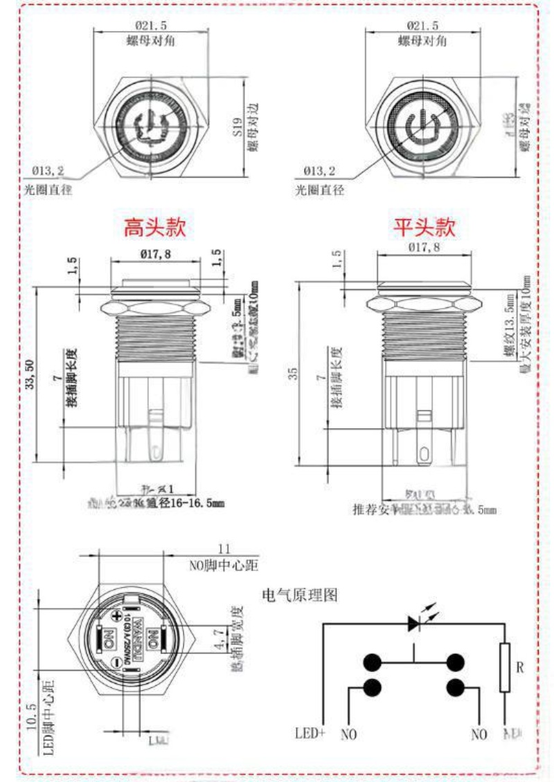 This 16mm metal push button switch delivers 10A high-current capacity with a distinctive ring LED. Offering both latching and momentary functions, its waterproof design ensures reliable performance for 5V/12V power start applications.