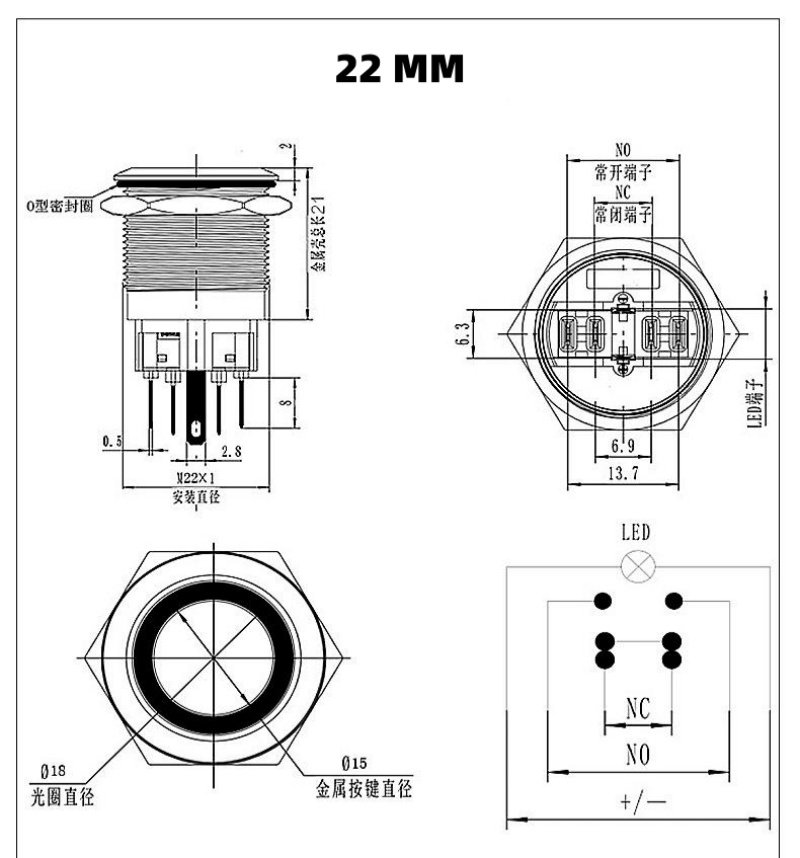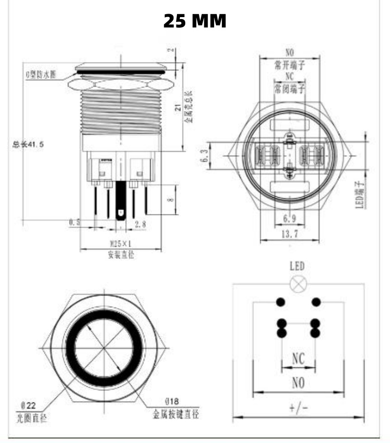This illuminated metal push button switch comes in 22/25mm sizes with maintained/momentary operation and 1NO1NC contacts. Featuring waterproof construction and pre-wired design, it delivers reliable performance for automotive power start applications.