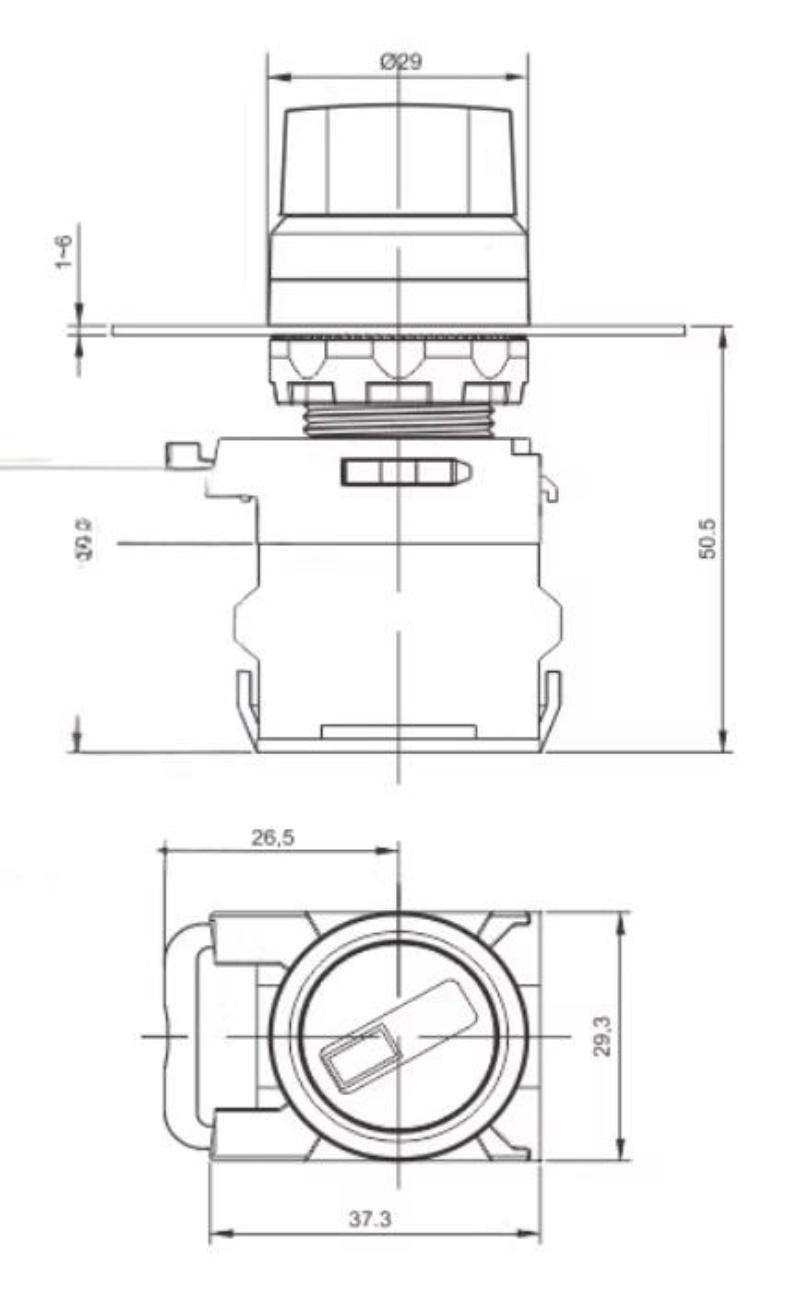 This black rotary switch is available in 22-30mm sizes with 2-position and 3-position configurations. Featuring both maintained and momentary operation modes with 1NO1NC contacts, it offers versatile control solutions for various industrial applications.