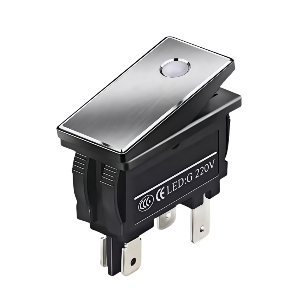 Durable metal rocker switch designed for high-current applications. Rated at 16 amps, this switch features 2 normally open (2NO) contacts and supports multiple voltages including 12V, 24V, and 220V, making it ideal for a wide range of electrical systems. Includes a built-in LED indicator light for clear visual ON/OFF status. Perfect for use in automotive, industrial machinery, power equipment, and control panels where reliable switching and visibility are essential.