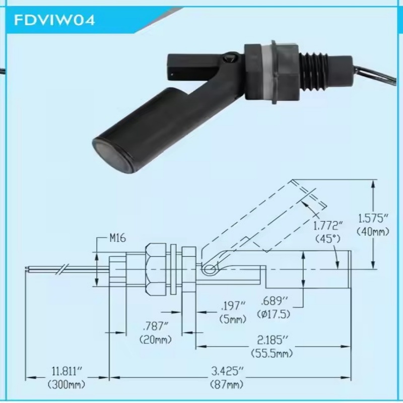 Plastic Float Level Switch | Corrosion-Resistant PP/POM, 120°C High Temp, IP68/CE Certified. For Water Tanks, Hot Water Mattress. 0.5A-1.0A Signal Output, Customizable Cable Length.