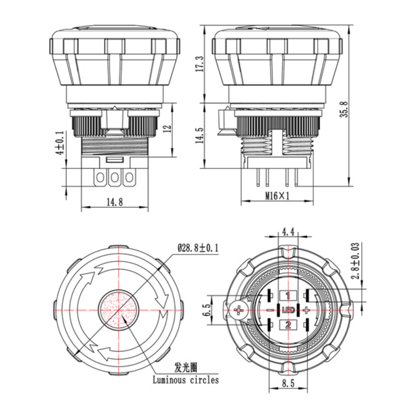 This 16mm plastic emergency stop button with a mushroom head offers reliable IP67-rated protection and a standard 1NO1NC contact configuration, making it ideal for marine, medical, new energy, and access control equipment.